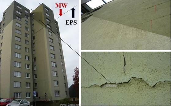 Fot. 1-2: Spękania na łączeniach styropianu i wełny. P. Zemene, Czeskie Stowarzyszenie Producentów Styropianu
